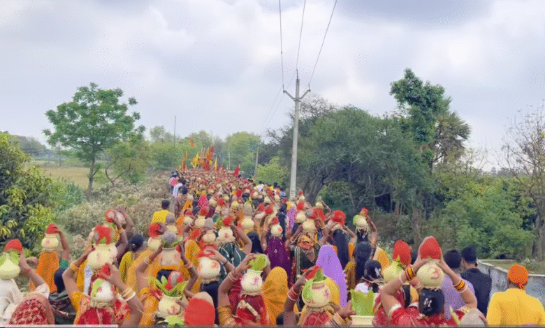 कुरमा में शतचंडी महायज्ञ को लेकर निकली भव्य कलश शोभायात्रा, 1201 कन्याओं ने लिया भाग